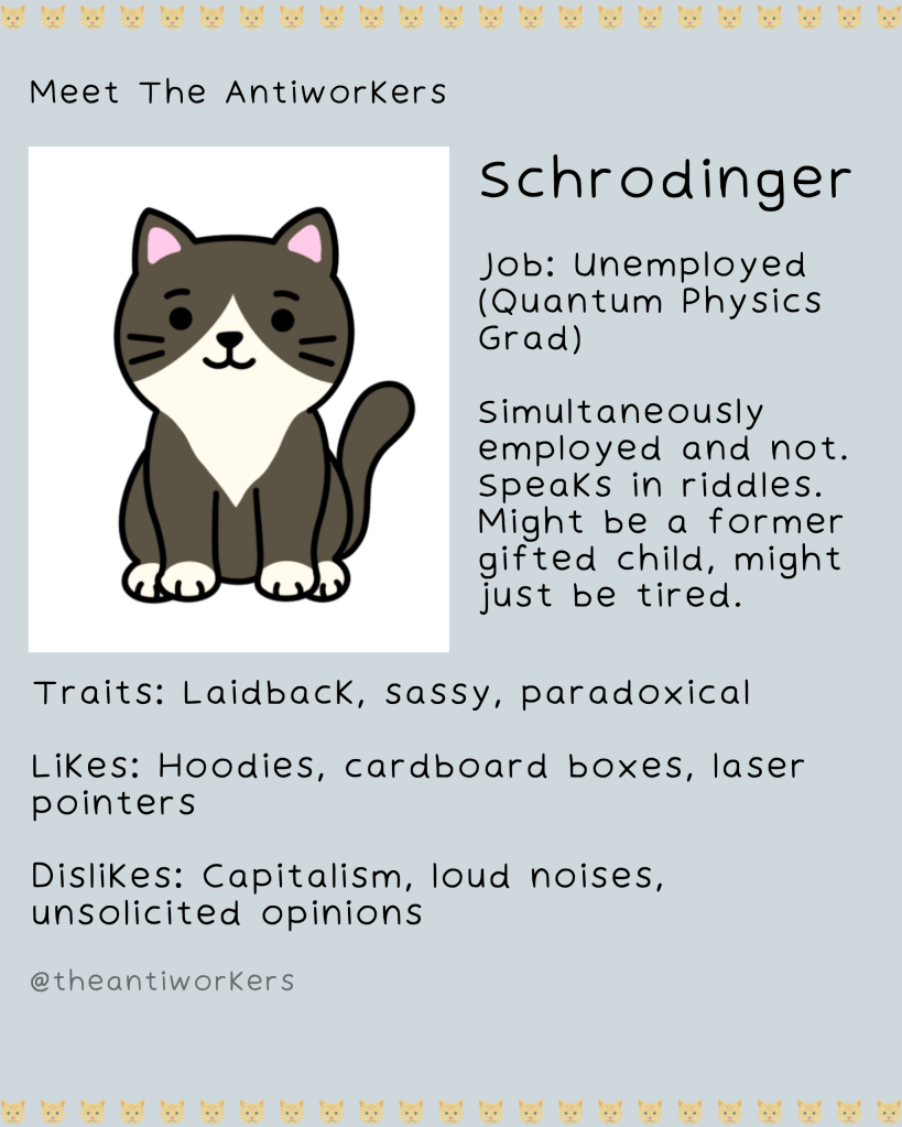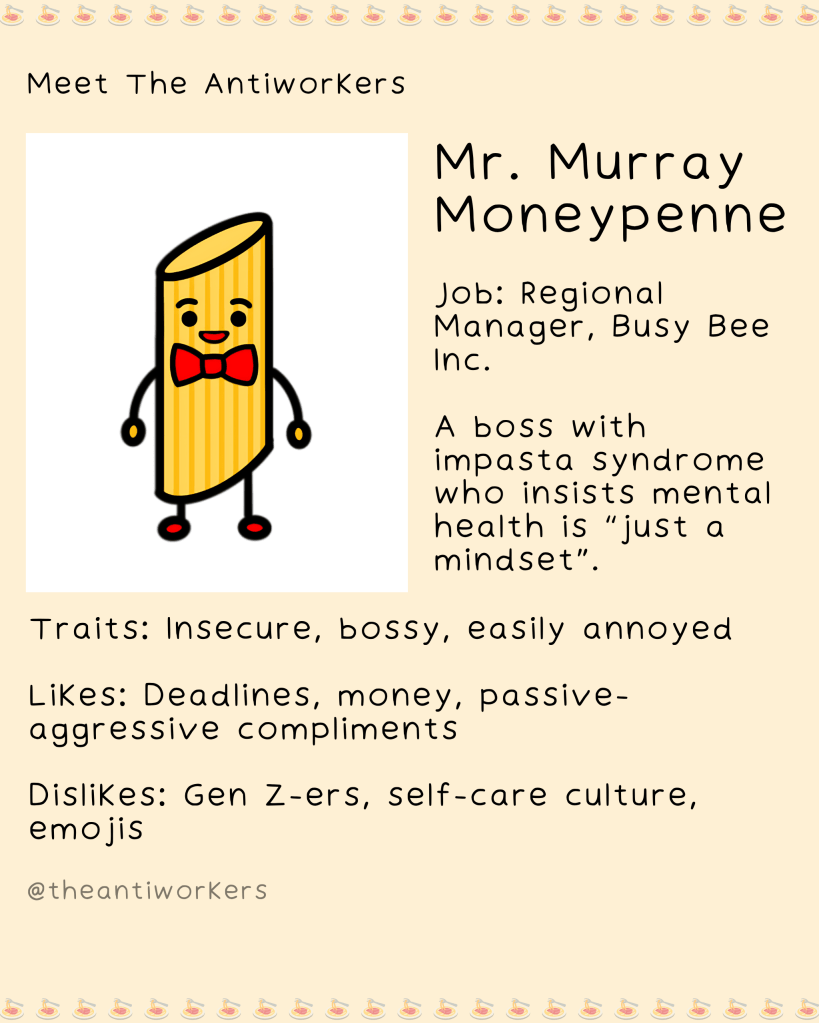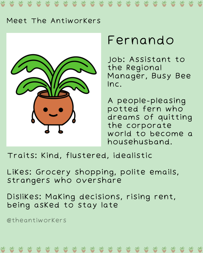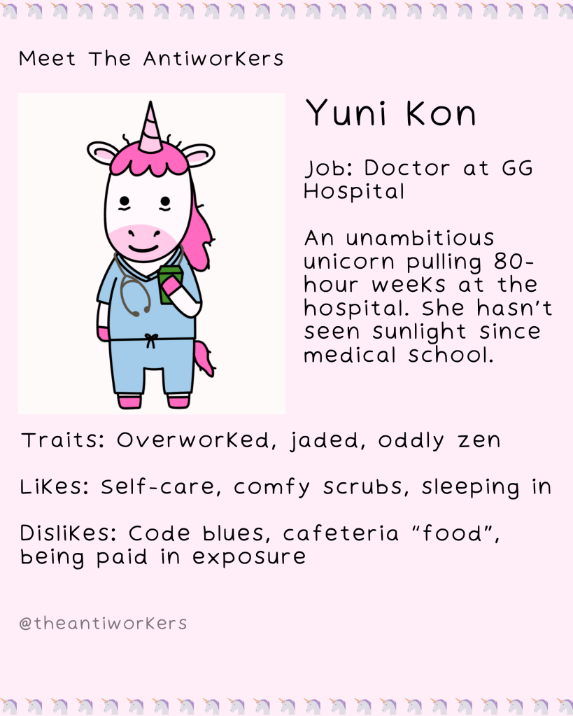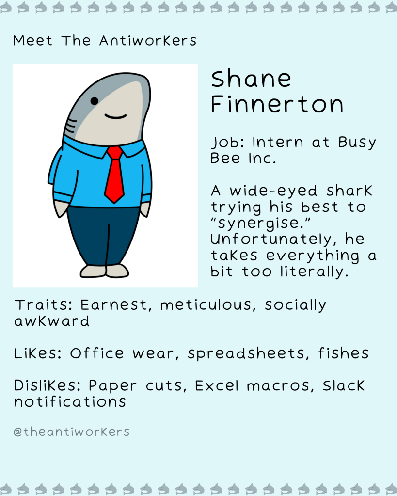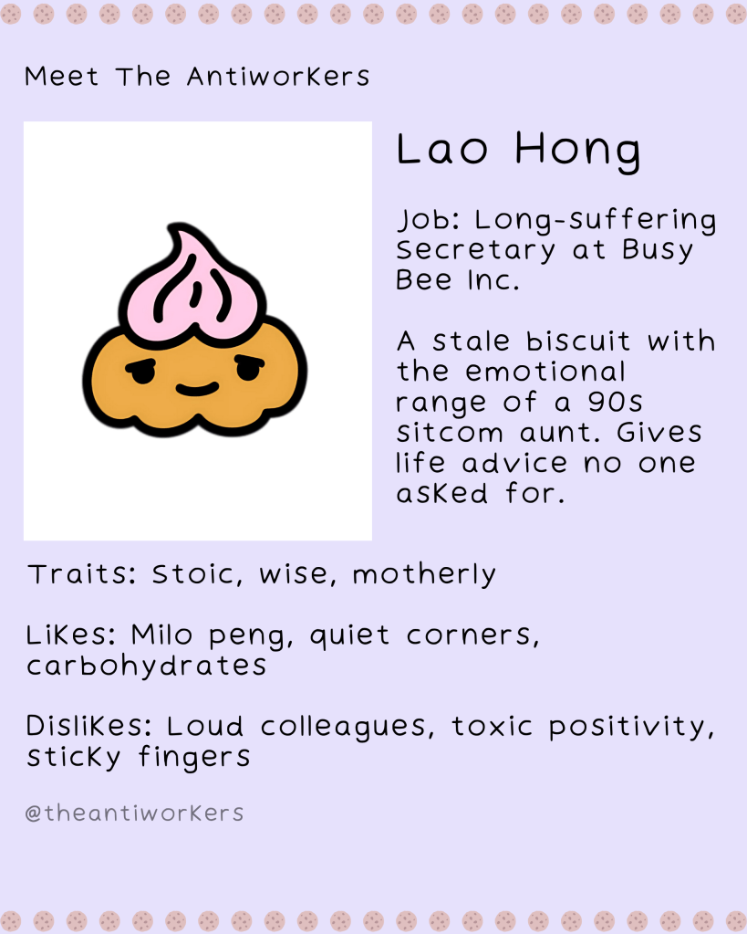 Meet The Antiworkers – a wholesome, slightly unhinged crew navigating modern work life, burnout, and the pursuit of doing the bare minimum. Each character is based on my friends or real people I’ve met, lovingly exaggerated to reflect the struggles of our generation.